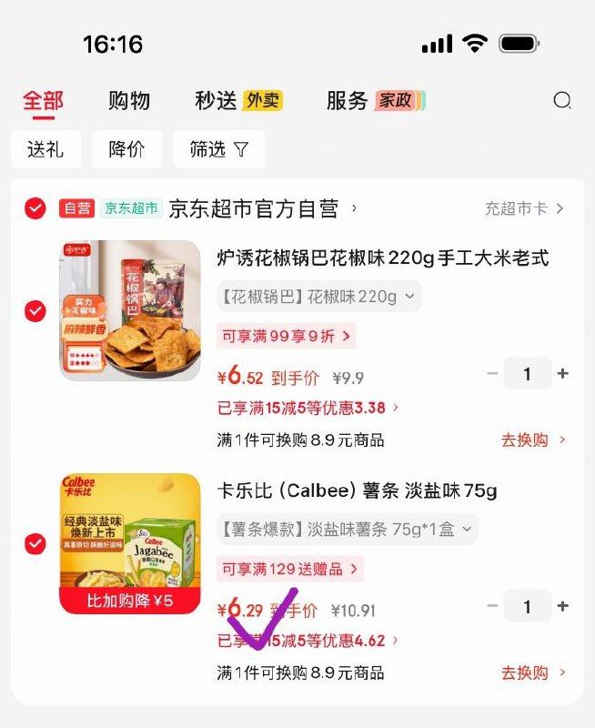找到下方商品(先加购再找)